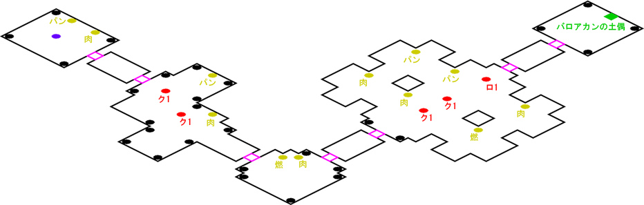 発生条件 ブリーフィング6の後 アイテム バロアカンの土偶, 獣肉 x6, ふかふかパン x4, 燃料パック x2 敵 ロボット1 x1, クマ1 x4