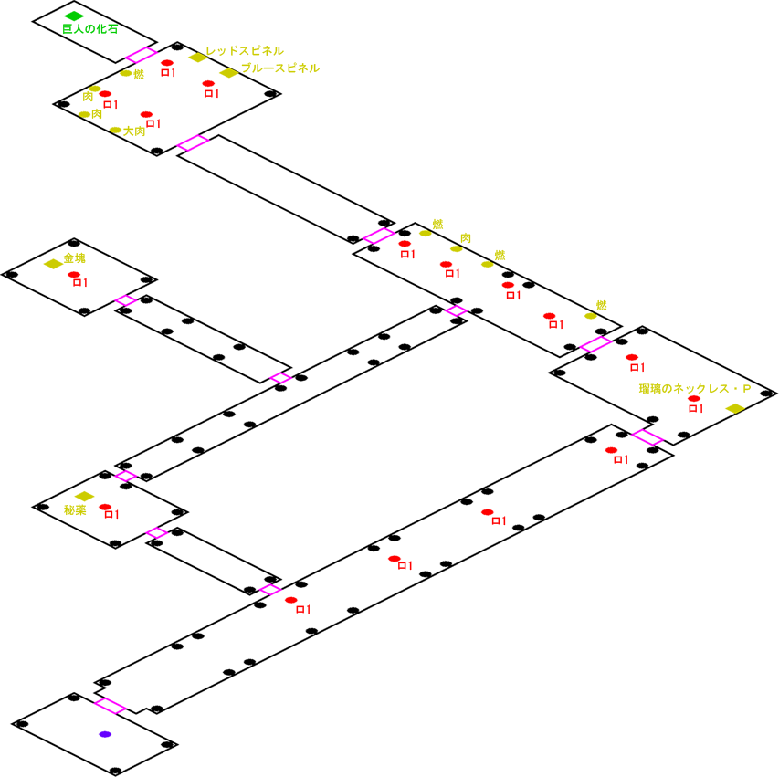 発生条件 エアナとメイル仲間にの後 アイテム 巨人の化石, ブルースピネル x1, レッドスピネル x1, 金塊 x1, 瑠璃のネックレス・P x1, 秘薬 x1, 大獣肉 x1, 獣肉 x3, 燃料パック x4 敵 ロボット1 x16