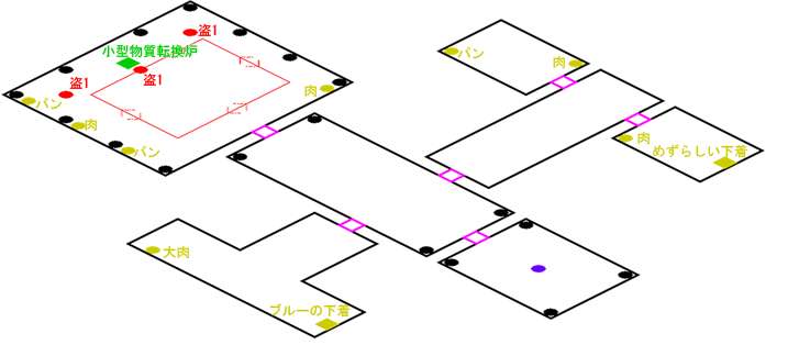 発生条件 ズイウン修理開始の後 アイテム 小型物質転換炉, めずらしい下着 x1, ブルーの下着 x1, 大獣肉 x1, 獣肉 x4, ふかふかパン x3 敵 闇盗掘団 x3