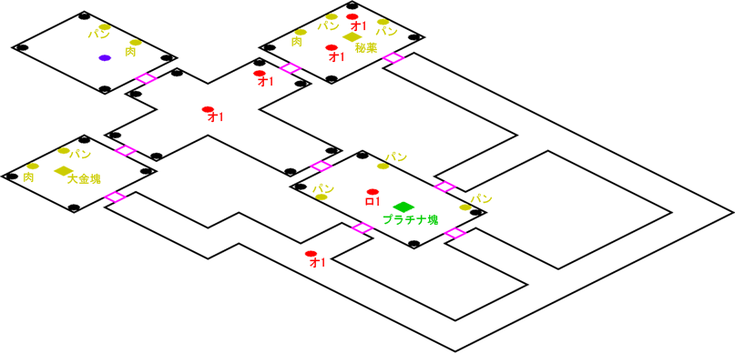 発生条件 エアナ復帰の後 アイテム プラチナ塊, 大金塊 x1, 秘薬 x1, 獣肉 x3, ふかふかパン x7 敵 ロボット1 x1, オオカミ1 x5