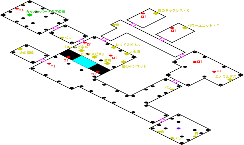 発生条件 バルター・ノートを解読するエアナの後 アイテム カッパッパードギアの扉, 大金塊 x1, 金の指輪 x1, 金のインゴット x1, エメラルダス x1, ピンクスピネル x1, ブルースピネル x1, レッドスピネル x1, 金塊 x1, 銀のネックレス・C x1, パワーユニット・T x1, 獣肉 x2, ふかふかパン x3 敵 ロボット4 x1, ロボット1 x7, コウモリ1 x2
