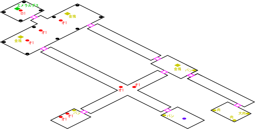発生条件 バルター・ノートを解読するエアナの後 アイテム エメラルダス, めずらしい下着 x1, ブルーの下着 x1, 大獣肉 x1, 獣肉 x4, ふかふかパン x4 敵 闇盗掘団 x3