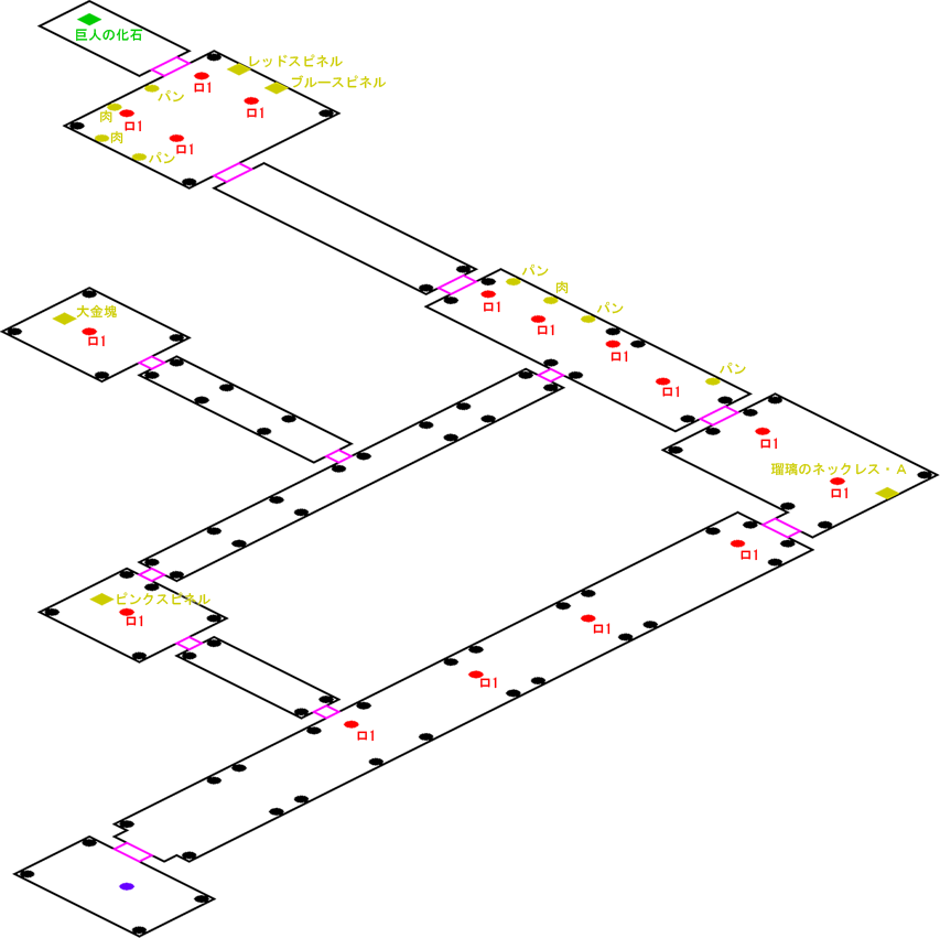 発生条件 バルター・ノートを解読するエアナの後 アイテム 巨人の化石, 大金塊 x1, ピンクスピネル x1, ブルースピネル x1, レッドスピネル x1, 瑠璃のネックレス・A x1, 獣肉 x3, ふかふかパン x5 敵 ロボット1 x16