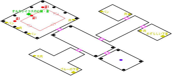発生条件 アカデミー文化祭の後(機動兵不可) アイテム オルカレイコスの心臓・蒼, めずらしい下着 x1, ブルーの下着 x1, 大獣肉 x1, 獣肉 x4, ふかふかパン x4 敵 闇盗掘団 x3