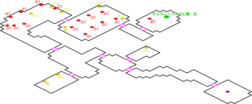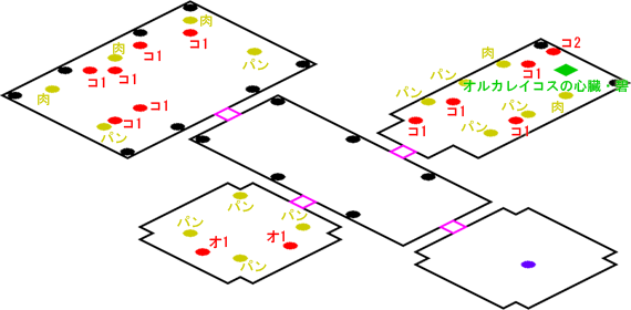 発生条件 アカデミー文化祭の後(機動兵不可) アイテム オルカレイコスの心臓・碧, 獣肉 x4, ふかふかパン x10 敵 コウモリ2 x1, コウモリ1 x10, オオカミ1 x2