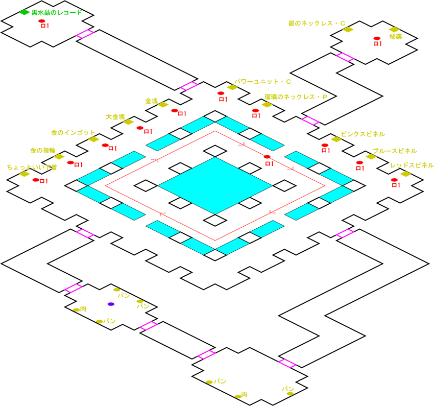 発生条件 カルが仲間になった後、カルが必要 アイテム 黒水晶のレコード, 大金塊 x1, 金の指輪 x1, 金のインゴット x1, ピンクスピネル x1, ブルースピネル x1, レッドスピネル x1, 金塊 x1, ちょっといい下着 x1, 瑠璃のネックレス・P x1, 銀のネックレス・C x1, パワーユニット・C x1, 秘薬 x1, 獣肉 x2, ふかふかパン x5 敵 ロボット1 x13