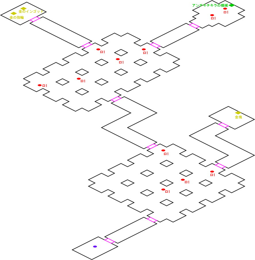 発生条件 ゾーンダースの依頼の後 アイテム 低純度オリハルコン, 大金塊 x1, 金の指輪 x1, 金のインゴット x1, ピンクスピネル x1, ブルースピネル x1, レッドスピネル x1, 金のネックレス・A x1, 秘薬 x1 敵 ロボット1 x16