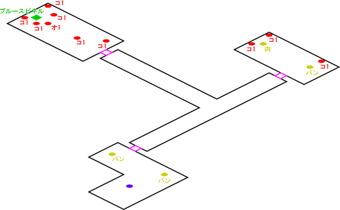 発生条件 ライブラリの基地情報入手で1000ベルク払った後 アイテム 巨人の化石, 大金塊 x1, ピンクスピネル x1, ブルースピネル x1, レッドスピネル x1, 瑠璃のネックレス・A x1, 獣肉 x3, ふかふかパン x5 敵 ロボット1 x16