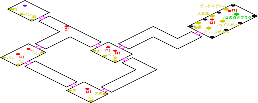 発生条件 ドリル地底人から通信の後 アイテム マクマラの人工水晶, ピンクスピネル x1, ブルースピネル x1, レッドスピネル x1, 金塊 x1, 銀のネックレス・P x1, 大獣肉 x1, 獣肉 x3, ふかふかパン x11 敵 ロボット1 x8